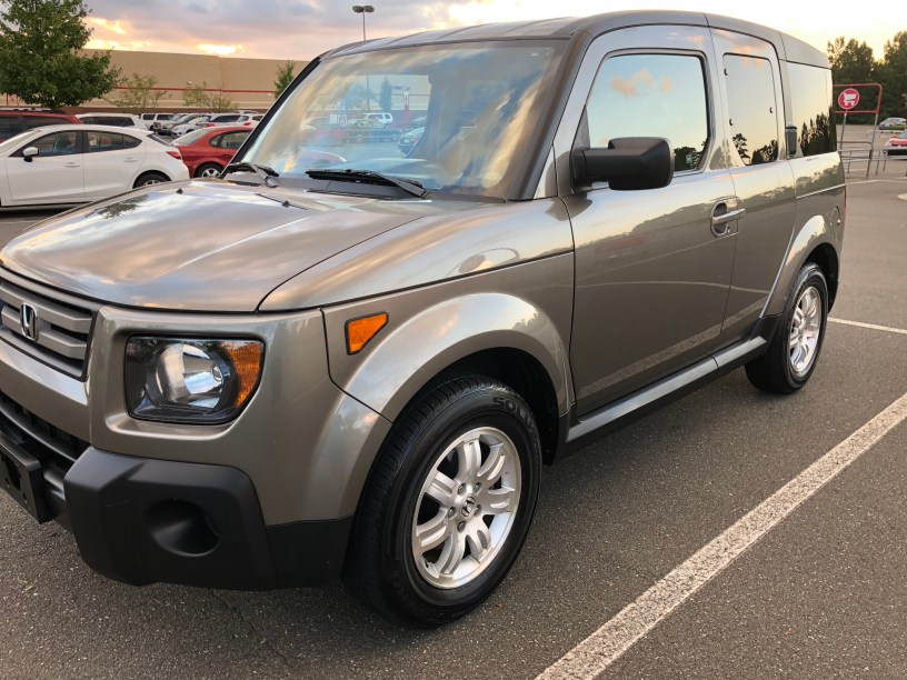 I met Jef from Carolina Car Finders at Bunky’s – the car detail place just up the street from me…well, actually Jef picked me up in his truck, with his two Golden Retrievers as I was walking over to Bunky’s. I was super excited. I was curious to see the Element, curious to see if the things that initially drove me away from the car back in 2006 would still be in play in the 2008 model.