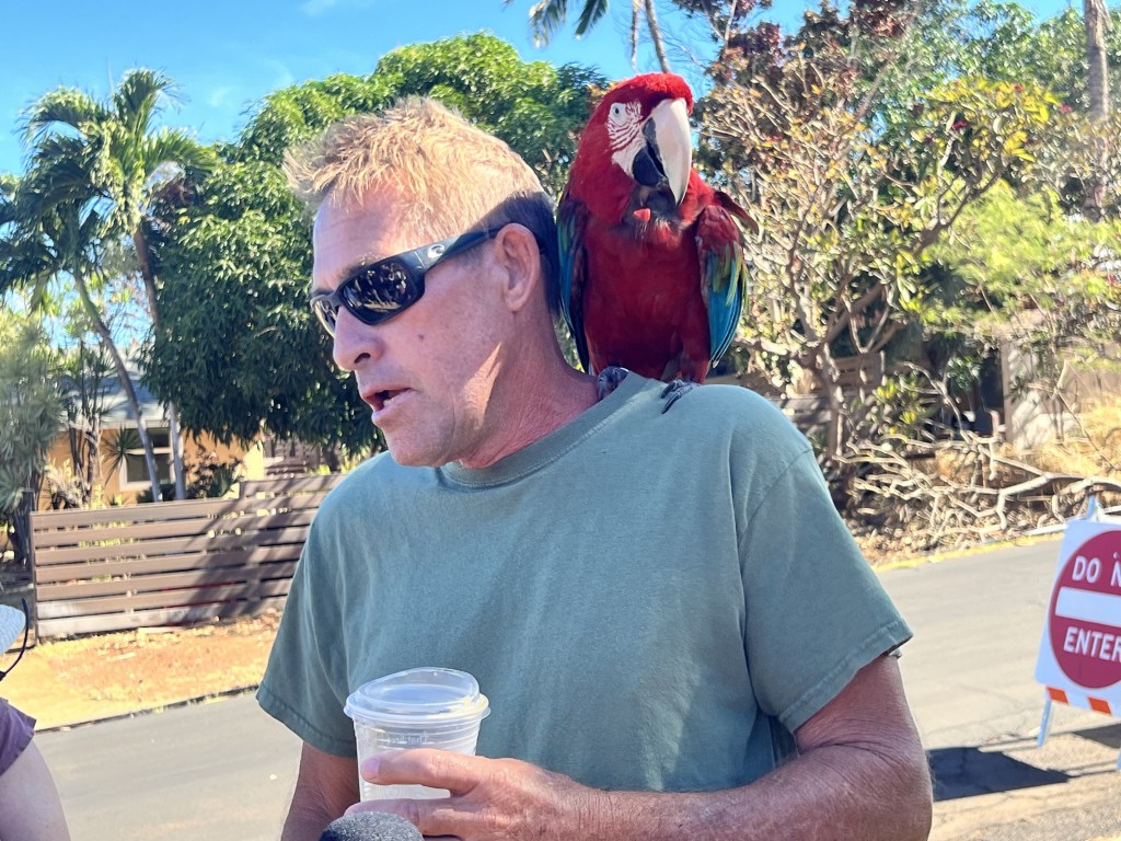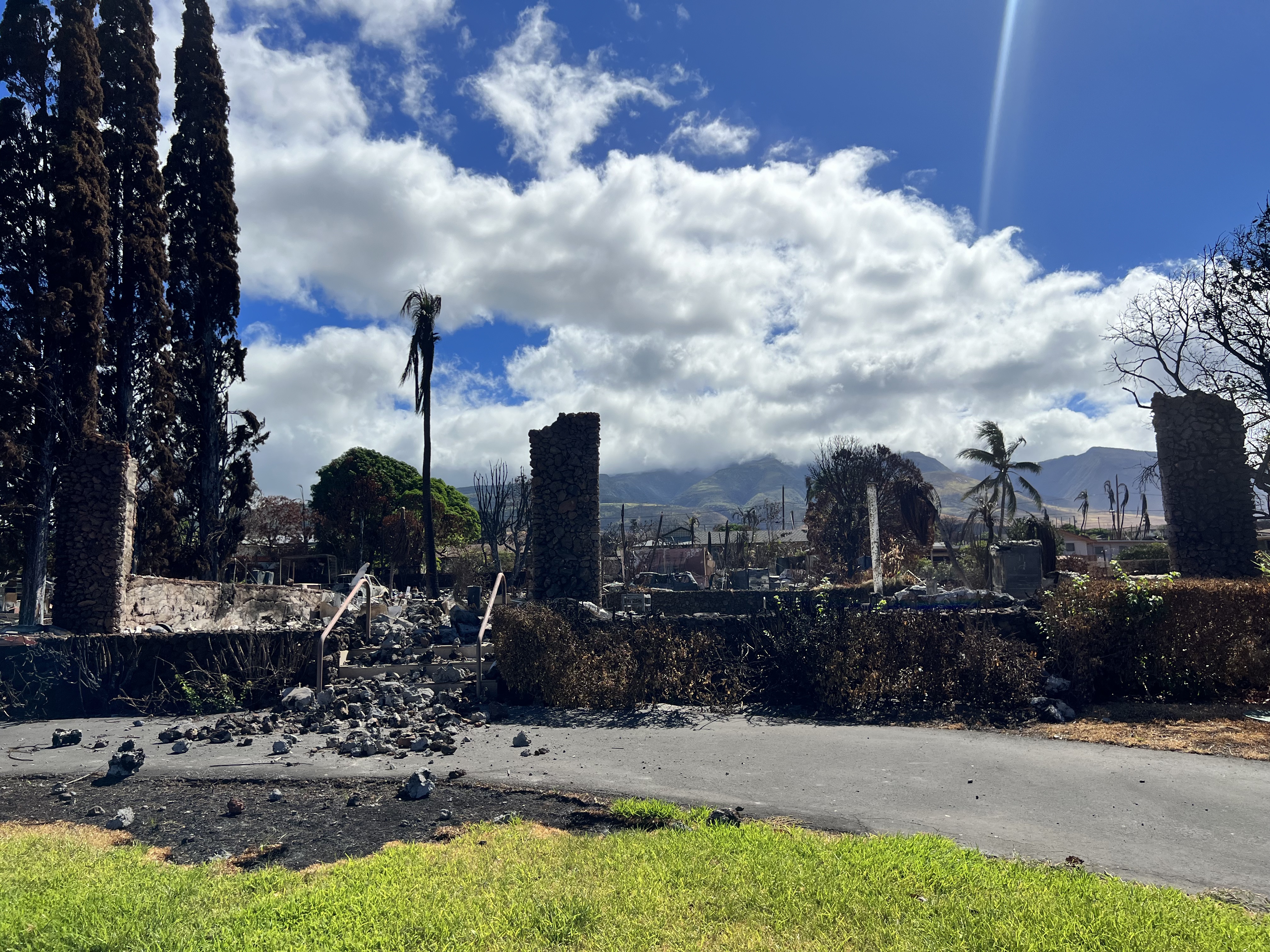 “My house is directly behind the church over here. So I came back in the day after and drove through the neighborhood,” he explained to reporters covering today’s re-entry in a controlled area at the intersection of Kaniau and Highway 30, just outside the neighborhood. “The telephone poles were in the street smoldering, and there were burned-out cars that looked kinda like Front Street where all the cars were jammed up and burned. And I’ve been up here since. And, you know, I’m lucky. Nothing happened at all to my house.”